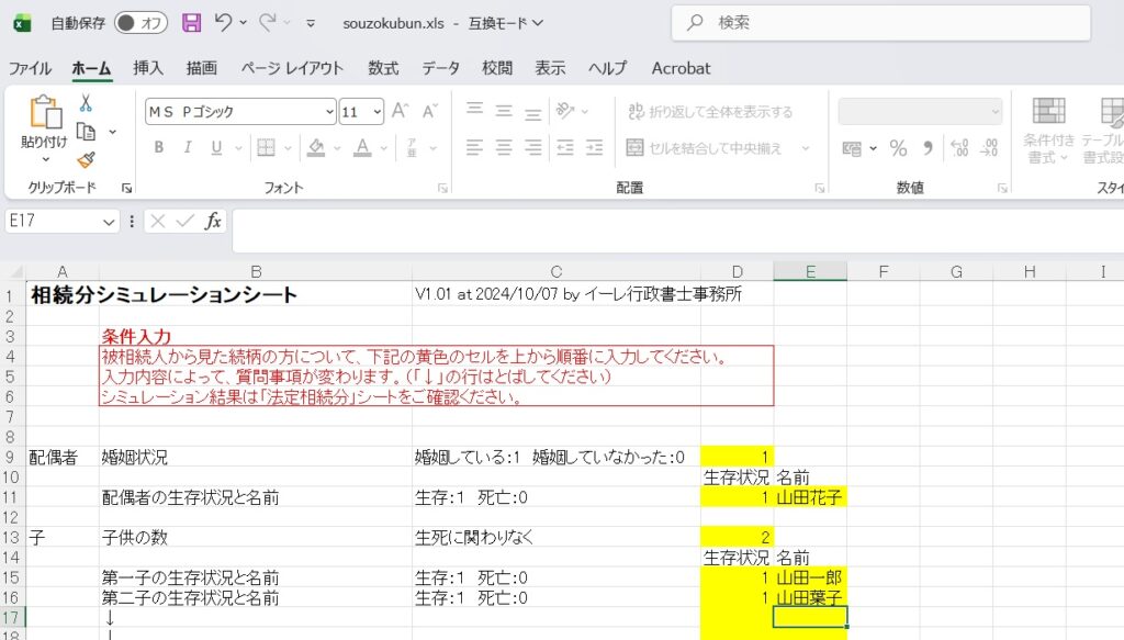 提供元:イーレ行政書士事務所 形式:EXCELファイル(マクロなし)